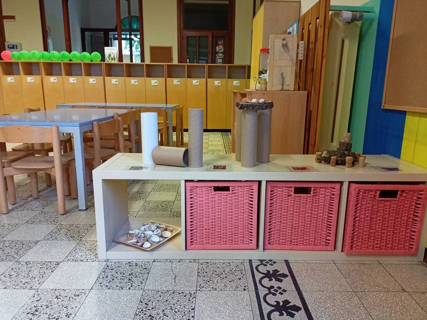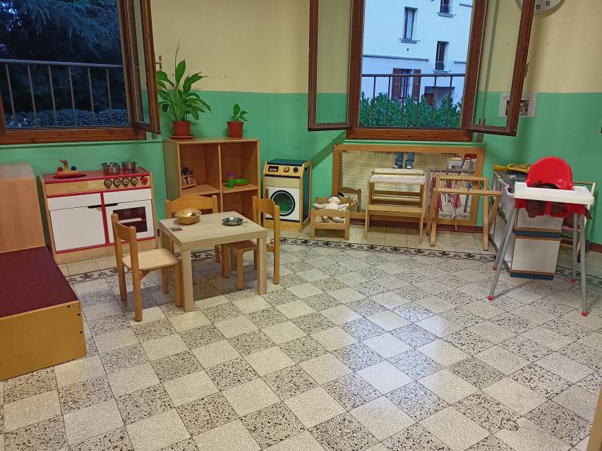 Una grande sezione dedicata ai 4 anni; 2 sezioni medie dedicate ai 3 anni; una grande sezione dediacta ai 5 anni con annesso una zona outdoor. Una sezione dedicata ai progetti con gli esperti esterni.